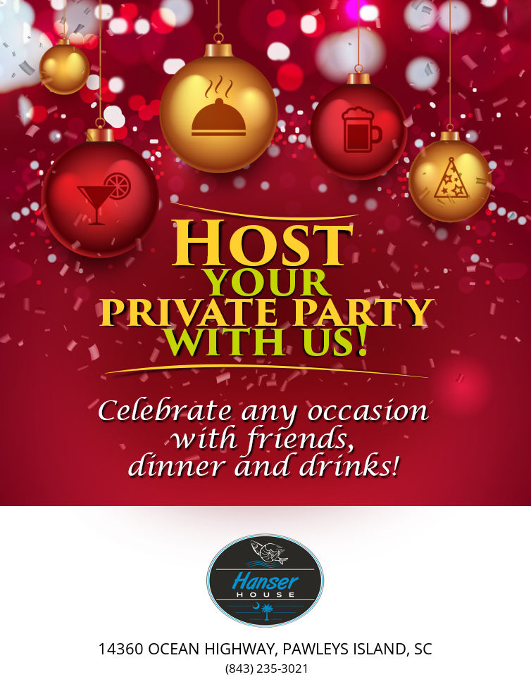 Hanser House is a family-owned restaurant located in the North Litchfield Beach section of Pawleys Island, SC. We are open for dinner Monday- Thursday from 4pm until 9pm and Friday- Saturday from 4pm until 10pm, offering an extensive menu specializing in home cooking, seafood, and choice aged beef.